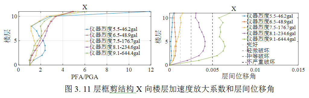 (3)本次地震記錄到的地震動卓越頻率范圍普遍較寬,PGV/PGA較大,對結(jié)構(gòu)的破壞力較強(qiáng),造成了震中區(qū)磨西鎮(zhèn)的房屋破壞嚴(yán)重。