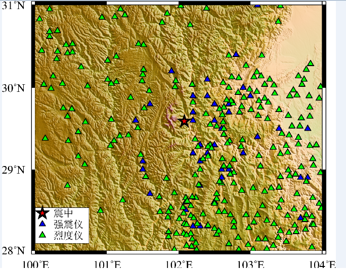 圖1 2022年9月5日四川瀘定6.8級地震震中及臺站分布圖