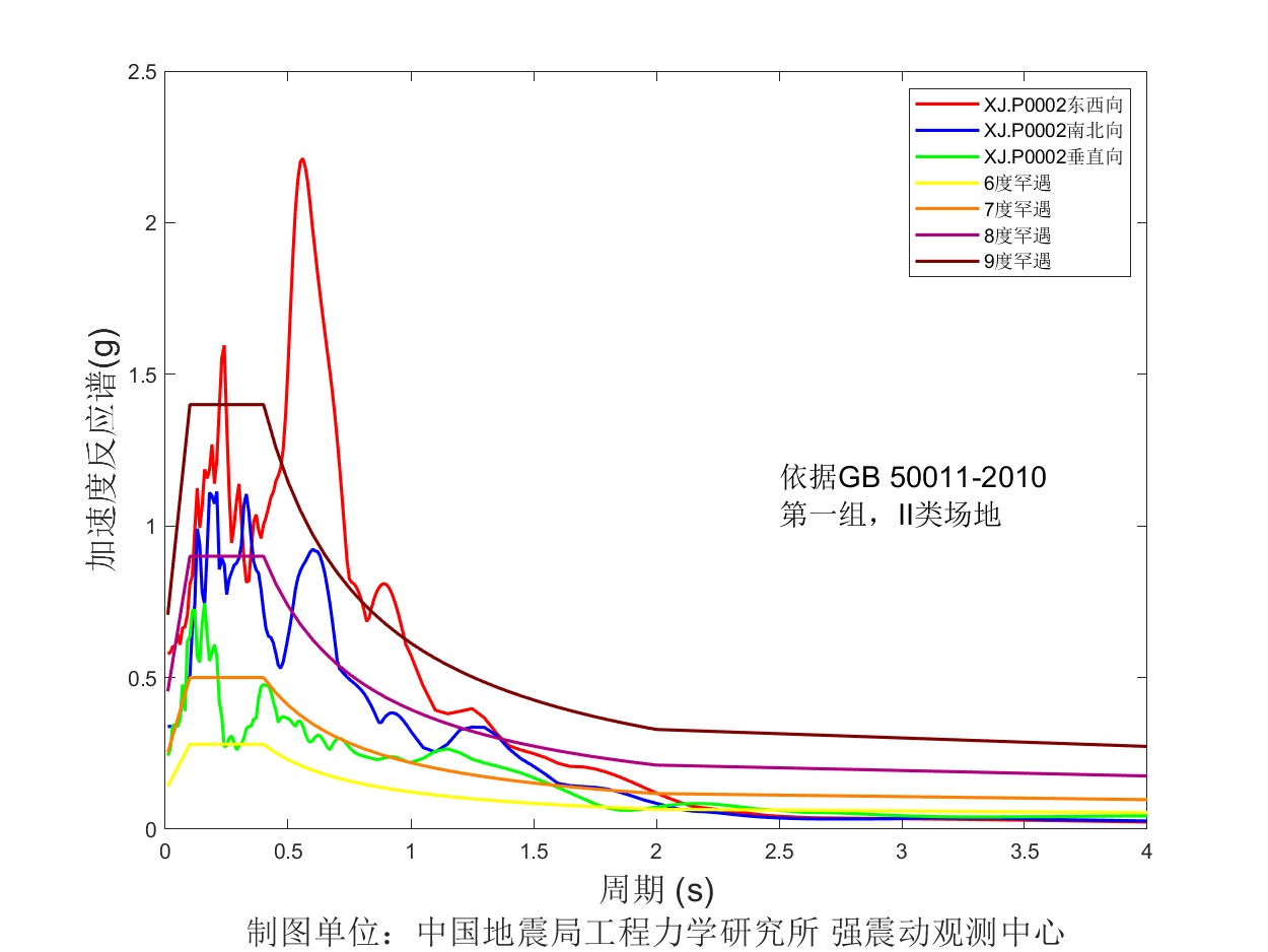 圖5 XJ. P0002臺加速度反應譜圖