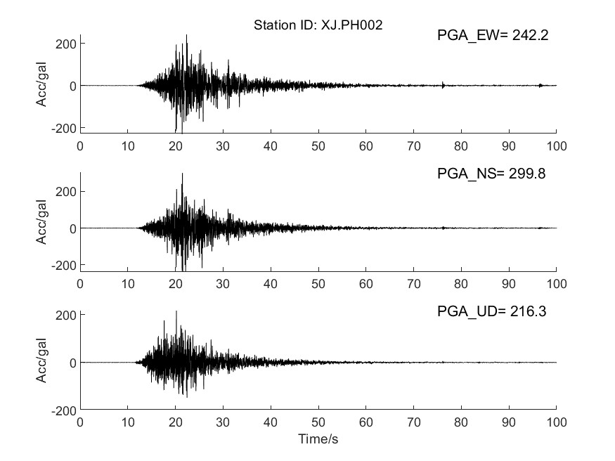 圖6 XJ.PH002臺加速度時程曲線圖